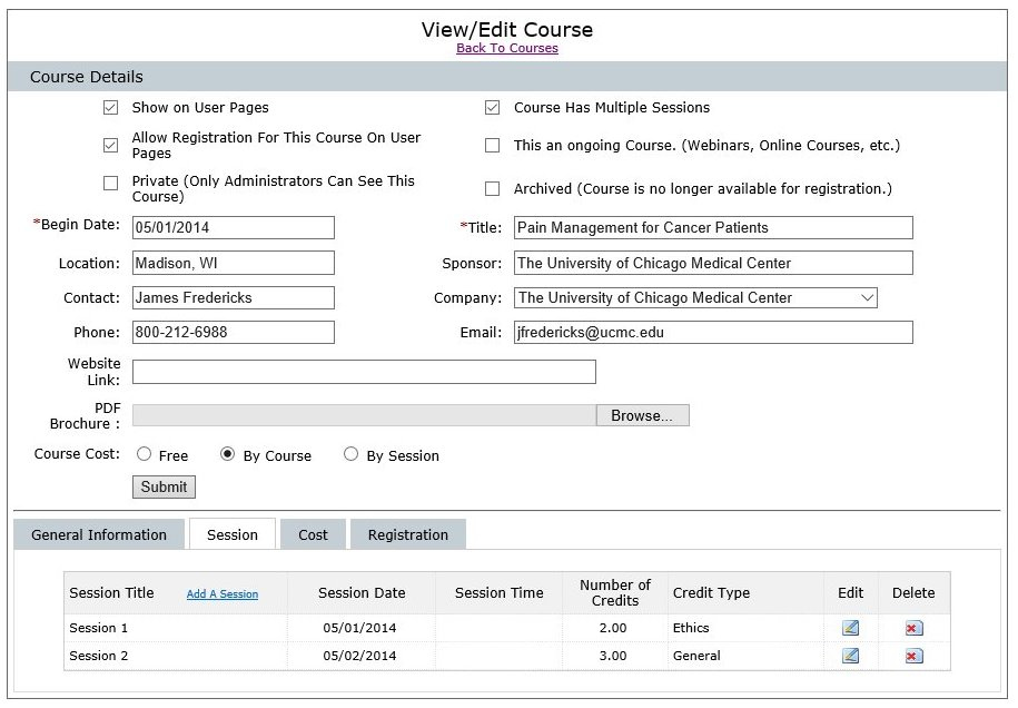Easily and efficiently manage a variety of course offerings including ongoing Webinars, multi-session workshops, multi-day conferences and one-time courses.